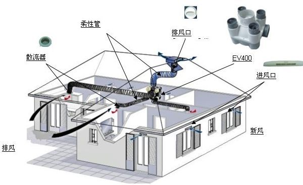 该系统是根据在密闭的室内一侧用专用设备向室内送新风,再从另一侧由专用设备向室外排出,在室内会形成“新风流动场”,从而满足室内新风换气的需要。