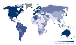 可以发现,空气质量较好的地区集中在了经济比较发达的北美、北欧、西欧和澳大利亚。中东、非洲及东南亚的空气质量则比较堪忧,然而这几个地区的人口密度也是最高的。因此综合来看,实际上九成的人都在呼吸着不健康的空气。